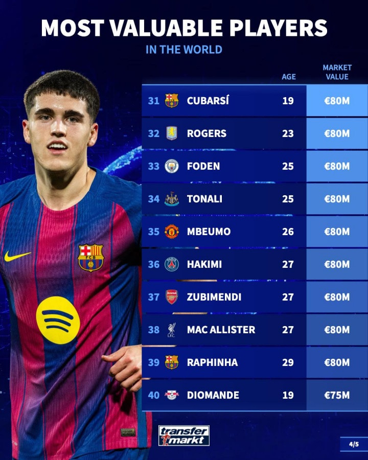 31-库巴西(巴萨),19岁,8000万欧