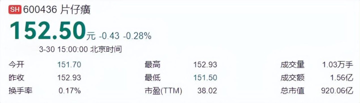 片仔癀最新市值截图