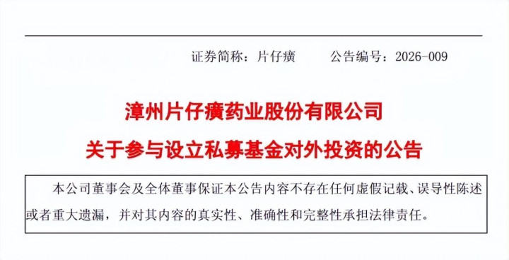 这次出资,是片仔癀2026开年以来,初次以LP身份参与成立VC/PE基金。