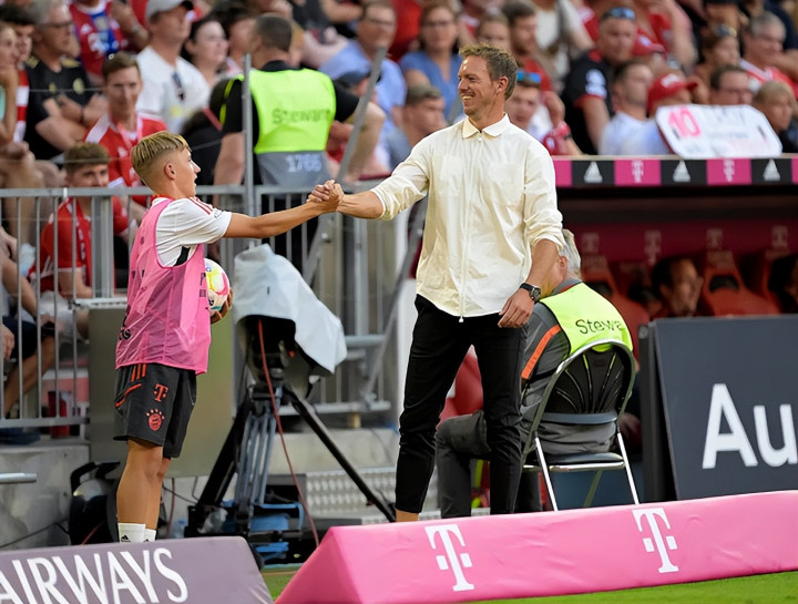 将时钟拨回2022年8月14日,在拜仁慕尼黑对阵沃尔夫斯堡的德甲联赛中,当值主裁因VAR介入而顷刻间叫停了比赛。就在这短暂的缺陷,时任拜仁主帅朱利安·纳格尔斯曼走到场边,一把揽住了那时年仅14岁的球童卡尔,并含笑着与他持手请安。在那时看来,这不外是绿茵场边一个温馨却短暂即逝的渺小片断。只怕莫得任何东谈主能料念念到,四年后的今天,这一幕会具有如斯热烈的宿命感。就在卡尔追究迎来德国国度队成年队首秀之际,那张定格两东谈主相拥的老相片在网络上再次被东谈主翻出,倏得击中多数球迷的软肋。
