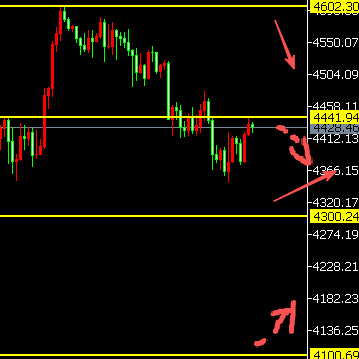 2、若4440迟迟不破,再遇阻回落,下方握续回调,看向4300的关隘。试探次位置支握反弹的契机,上方再战4440的位置。