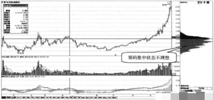 (1)筹码单峰密集:筹码散布图呈现了了的单一密集峰形式,绝大多半筹码集中在归拢价钱区间,上方无大面积套牢盘压制,上行阻力极小;