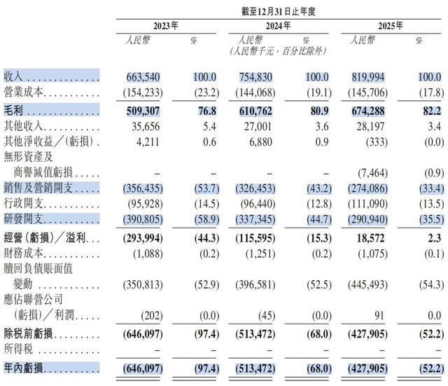 据招股书,2023年至2025年,群核科技杀青贸易收入分手为6.64亿元、7.55亿元和8.20亿元,包摄于母公司扫数者的净利润为-6.46亿元、-5.13亿元和-4.28亿元,毛利率为76.8%、80.9%和82.2%。