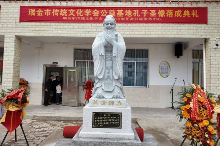上昼10时50分,孔子圣像落成揭幕典礼运行,跟着红绸迟缓滑落,至圣先师孔子圣像谢世东说念主顾惜中尊荣走漏。全场肃立,行三鞠躬礼,皆声诵读《论语之学而篇》。“学而时习之,不亦乐乎?”“慎终归远,民德归厚……”朗朗的诵读声轰动在基地上空,寓意着圣贤机灵将在瑞金这片红地盘上扎根孕育。这座圣像的落成,不仅为公益基地增添了放心的文化底蕴,更成为会员们学习交流的精神坐标。
