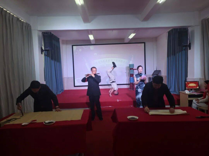 饰演者:学会志愿者杨建明与弟子(技击)、钟蔚山(笛子)、范远花(诗歌诵读)、詹继东和陈功灿(书道)
