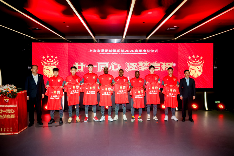 {jz:field.toptypename/}出征庆典上,新球员的闪亮登场是传统节目。2026 赛季,上海海港先后引进 5 名内援:张源(6 号)、岳鑫(28 号)、杨希(22 号)、安永佳(14 号)、卢永涛(38 号);分歧签下 3 名外助:克劳德(8 号)、加布里埃尔(11 号)、安佩姆(17 号)。上港集团总裁宋晓东、副总裁张敏分歧为新外助、新内援赠予全新球衣后,海港队长武磊的发言,独特说起了球队东说念主员流动、新老更迭背后的精神传承。