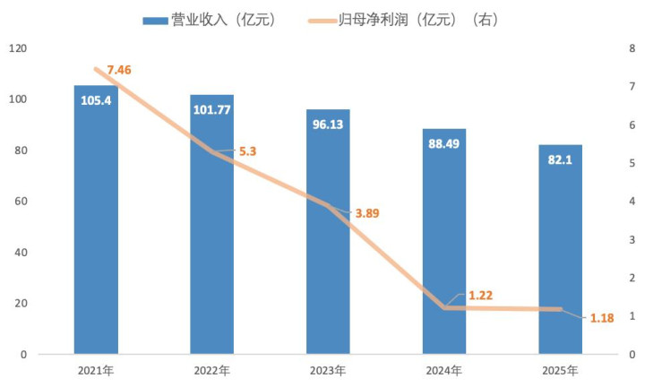 2025年,九阳股份事迹延续下行,营收同比着落7.23%至82.10亿元;归母净利润仅终局1.18亿元,同比减少3.85%,为上市来新低