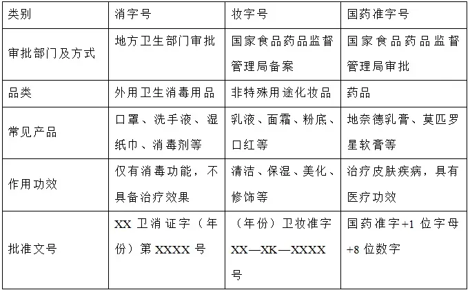 市面上销售的湿疹类家具可谓琳琅满目,到底该怎样选拔呢?这些家具一般有三种字号,“消字号”“妆字号”和“国药准字号”。下图为三种字号的具体分歧: