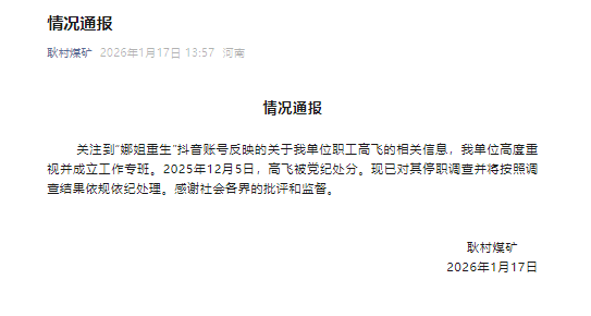 热心到“娜姐腾达”抖音账号反应的对于我单元员工高飞的干系信息,我单元高度疼爱并诞生职责专班。2025年12月5日,高飞被党纪贬责。现已对其停职探询并将按照探询效用依规依纪握住。感谢社会各界的月旦和监督。