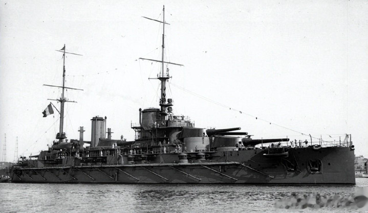1916年2月当兵后成为戈谢中将旗舰,驻泊科孚岛监视奥匈舰队并威慑希腊。1917年因煤炭短缺全年未出港,被戏称"布列塔尼旅社"。战后1919至1920年大修,1921年景为地中海分舰队旗舰。1922年参与击千里前奥匈战列舰欧根亲王号射击演习。1923年在比塞大搁浅无损。1924至1925年头次大改,1926年看望马耳他勾通对意防务。1927至1928年汽锅转换,换装火控系统。1930至1934年最大范围当代化改装,1935年再行当兵。1939年召回地中海。